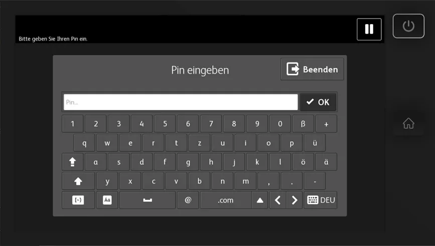 Sollten Sie eine zusätzliche Sicherheitsstufe benötigen, so bietet Docuflair die Abfragemöglichkeit eines PUK-Codes. Nach Verwendung der Kartenanmeldung oder der Anmeldung via PIN-Code, ist zusätzlich die Eingabe des PUK-Codes notwendig. Erst nach gültiger Eingabe wird das Gerät entsperrt.