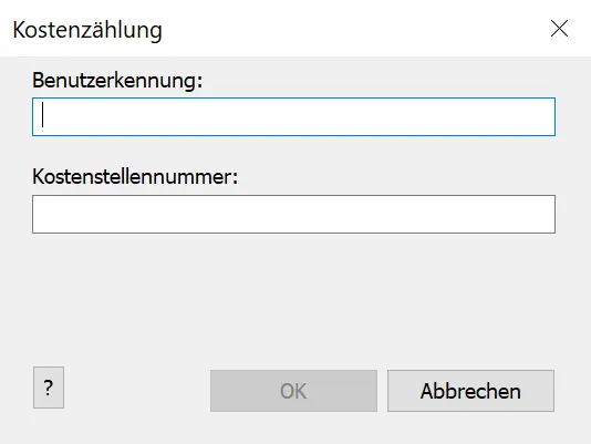Ab nun wird vor jeder Übermittlung eines Druckauftrages an diese Drucker ein Popup angezeigt. Um fortfahren zu können müssen Informationen angegeben werden.