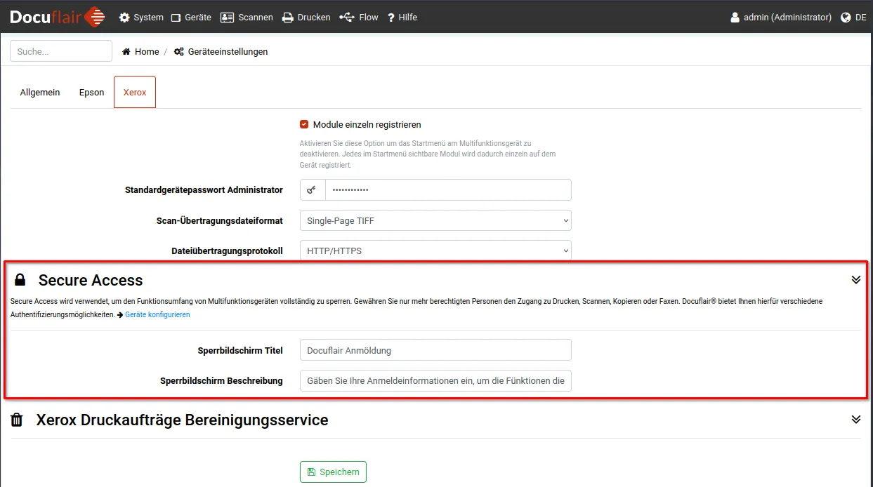 Zusätzlich muss jedoch die Option für XSA unter Xerox Einstellungen aktiviert werden.