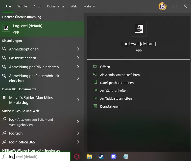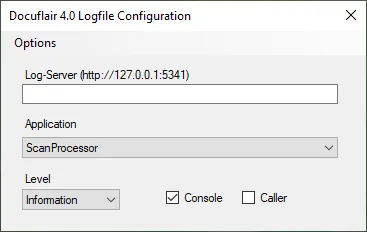Um anzupassen, wie viel aufgezeichnet werden soll, benötigen Sie die Log-Level Utility von Docuflair. Diese ist im Startmenü als LogLevel [default] auffindbar.
