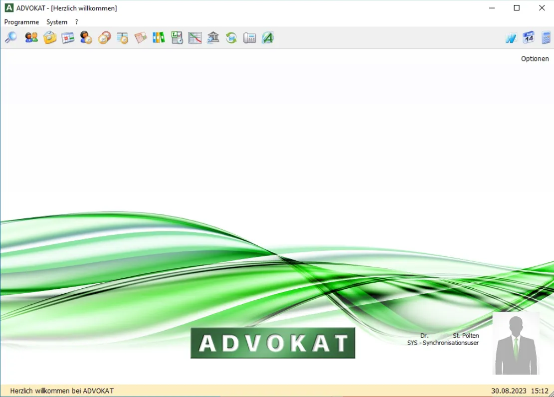 ADVOKAT Startbildschirm