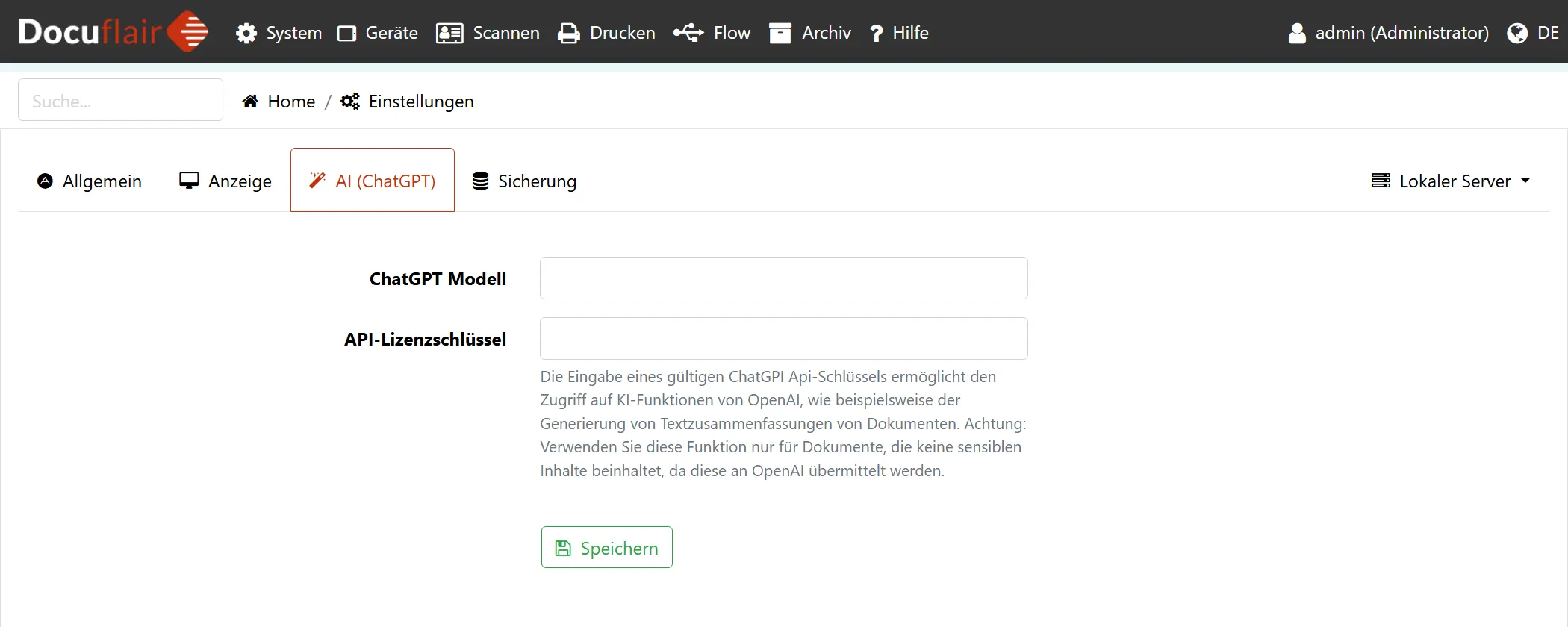 Hier können Sie die KI-Unterstützung für die automatische Dokumentenanalyse konfigurieren. Weitere Details finden Sie unter KI-Einstellungen.
