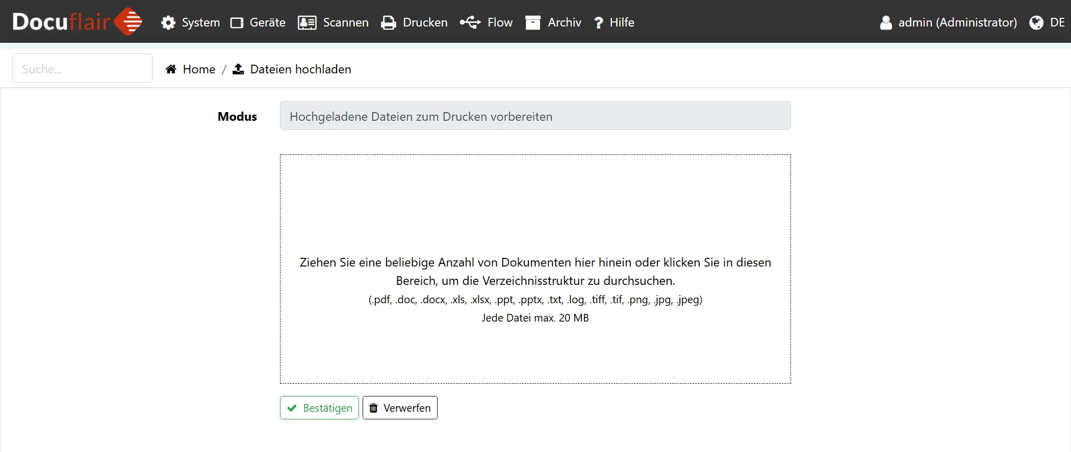 Drucken: Dokumenten-Upload