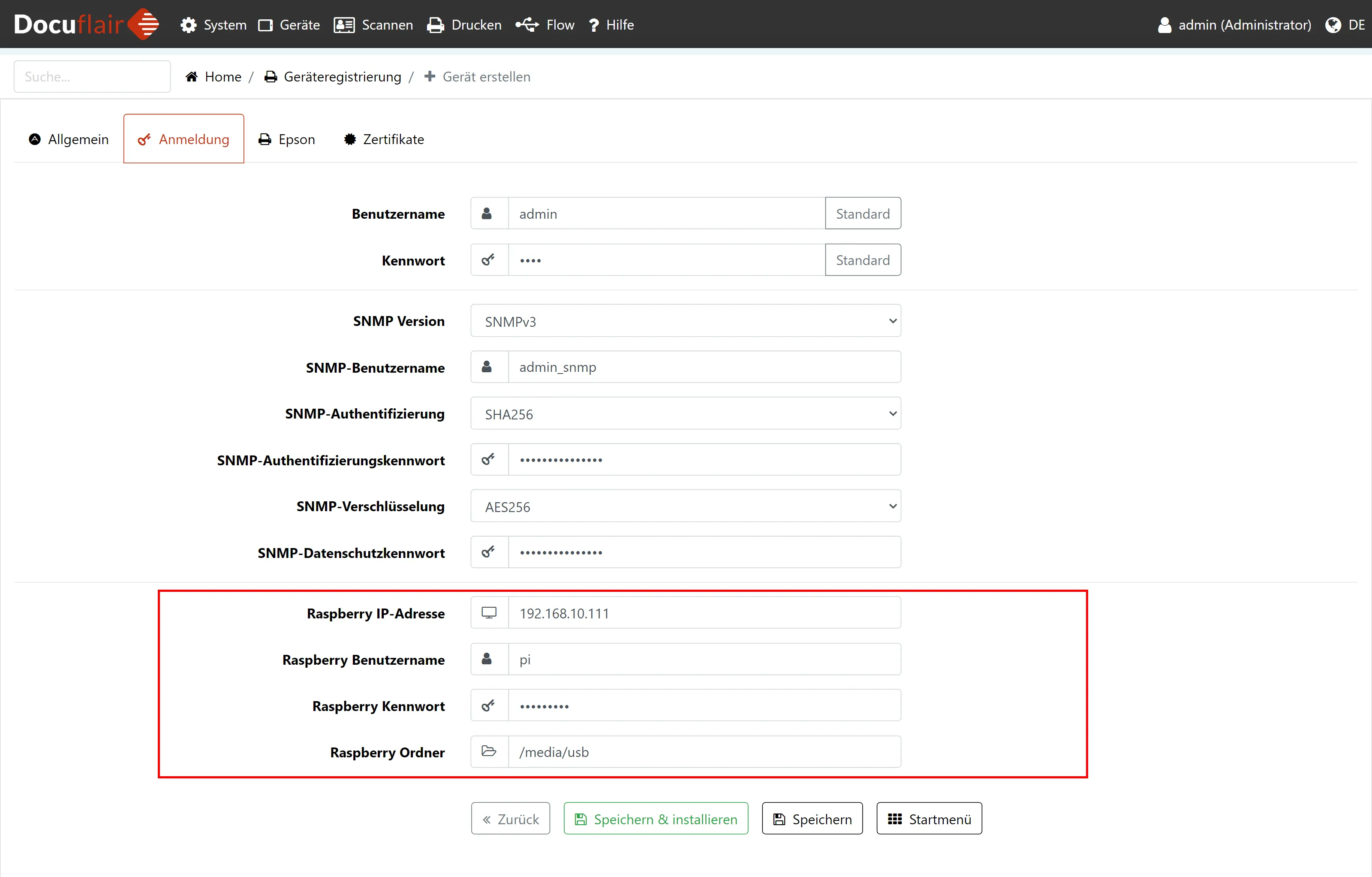 Hinweis: Die Raspberry Pi Funktionserweiterung ist nicht Bestandteil der Basislizenzen von Docuflair. Es ist eine entsprechende Lizenzerweiterung erforderlich.
