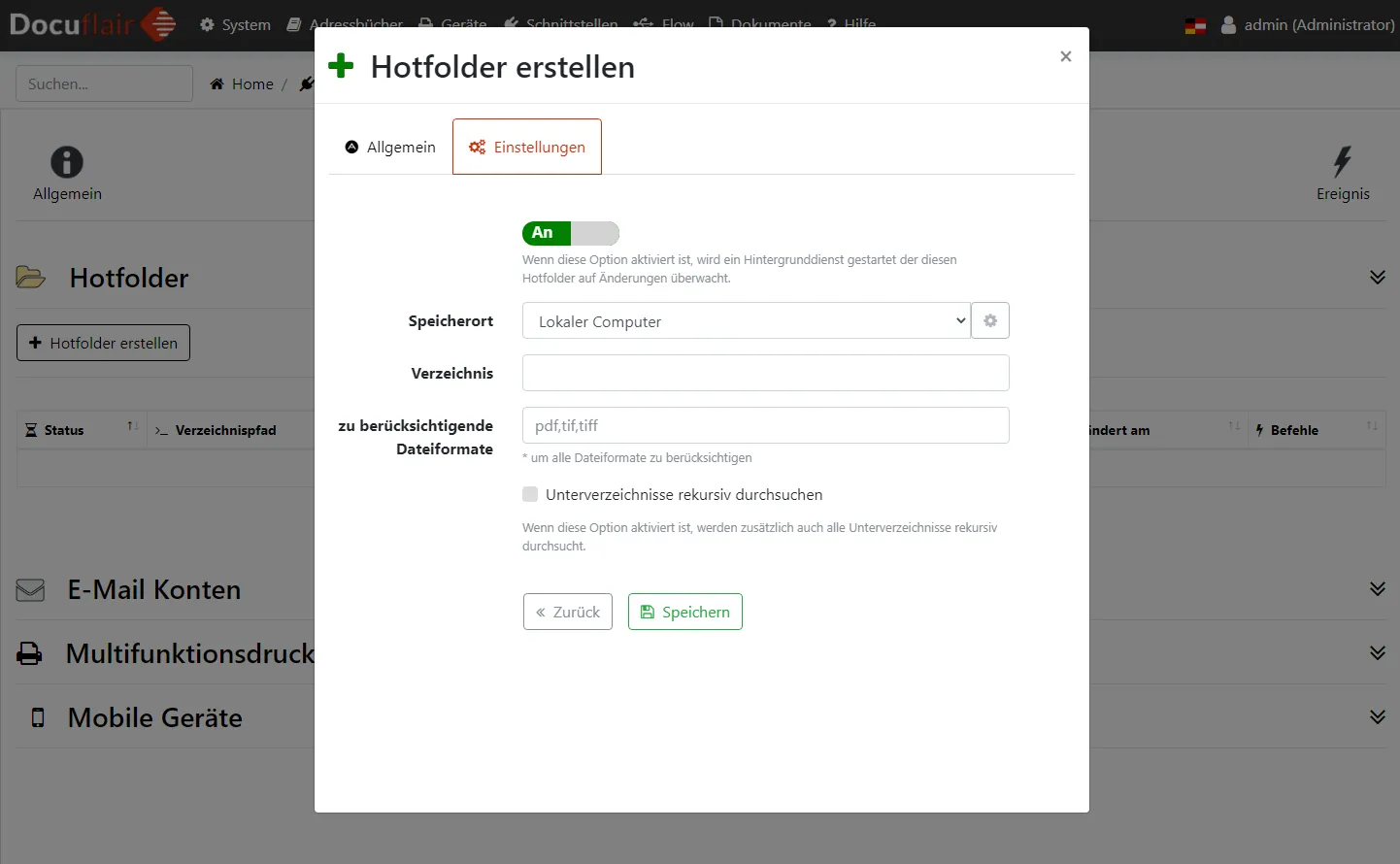 Hotfolder konfigurieren